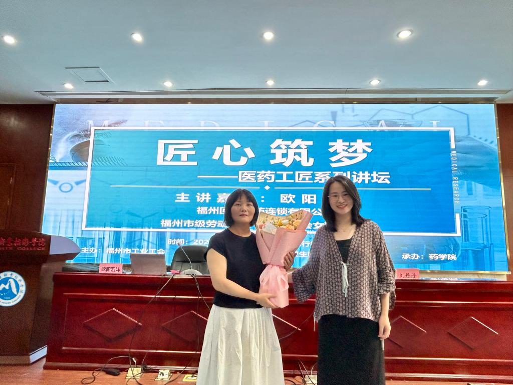 活動伊始,藥學(xué)院第二黨支部書記劉丹丹對劉鳳飛等一行的到來表示熱烈歡迎,并邀請福州市級勞動模范、全國女職工標(biāo)兵歐陽泗妹帶來“弘揚(yáng)勞模精神,點(diǎn)亮青春底色”專題分享。她以“堅定信仰、實(shí)干為本、自我驅(qū)動”為主線,講述31年一線藥品零售生涯的心得。作為福州回春醫(yī)藥連鎖公司回春國藥商場經(jīng)理,她將“聽黨指揮、能打勝仗”的軍旅精神融入工作,從每日整理藥品陳列、檢查質(zhì)量安全、組織員工學(xué)習(xí)的瑣碎事務(wù)中,詮釋“干一行、愛一行、精一行”的勞模精神。“藥品零售關(guān)系患者健康,容不得半分馬虎?!彼龔?qiáng)調(diào),即使是平凡崗位,也需以“耐心恒心、精益求精”的態(tài)度守護(hù)百姓健康。