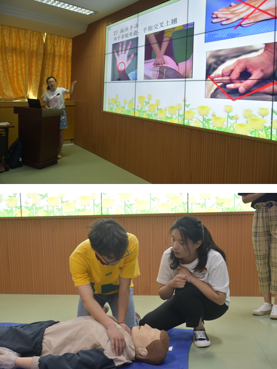 活動(dòng)現(xiàn)場(chǎng),紅十字會(huì)學(xué)生分會(huì)的急救知識(shí)技能培訓(xùn)吸引了大批福信院師生前來(lái)學(xué)習(xí),在志愿者們的講解下,大家了解到CPR、不同部位的傷口包扎、足踝扭傷及動(dòng)脈出血等急救方法。志愿者們邀請(qǐng)?jiān)趫?chǎng)師生進(jìn)行急救情節(jié)模擬和急救技能操作,生動(dòng)活躍的現(xiàn)場(chǎng)氣氛迅速拉近了兩校之間同學(xué)們的距離。