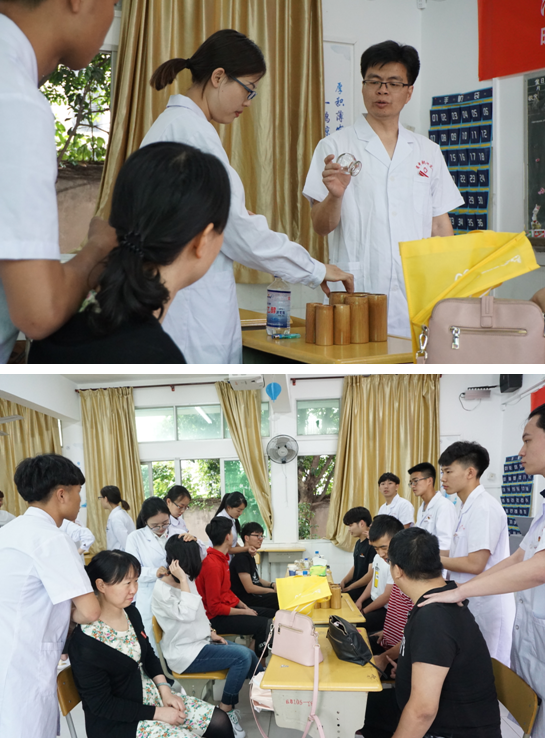 在福信院團(tuán)委的宣傳下,義診及職教活動(dòng)聚集了許多福信院師生前來(lái)體驗(yàn)??到【銟?lè)部的成員為福信師生們送去保健推拿、拔罐等義診項(xiàng)目。臨床醫(yī)學(xué)系陳銘、徐麗鶯、吳艷芳三位老師在現(xiàn)場(chǎng)與老師同學(xué)親切交流,對(duì)師生們常見(jiàn)的勞損癥狀提供解答并給出護(hù)理建議。