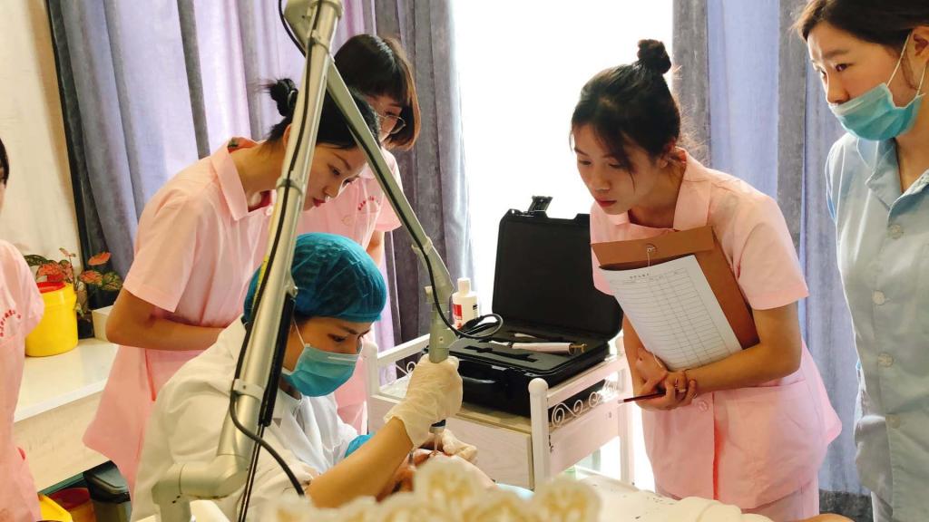 隨后,同學(xué)們分為四組,分別體驗前臺接待、皮膚檢測與咨詢、超皮秒治療觀摩以及超皮秒術(shù)后護理的實踐操作,并用自己所學(xué)的知識為到場的媽媽顧客們詳細(xì)講解超皮秒治療按摩的原理以及術(shù)后護理方法,參加活動的媽媽們紛紛表示看到同學(xué)們能夠?qū)⑺鶎W(xué)知識融會貫通,真是充分感受到了職業(yè)教育的魅力。
