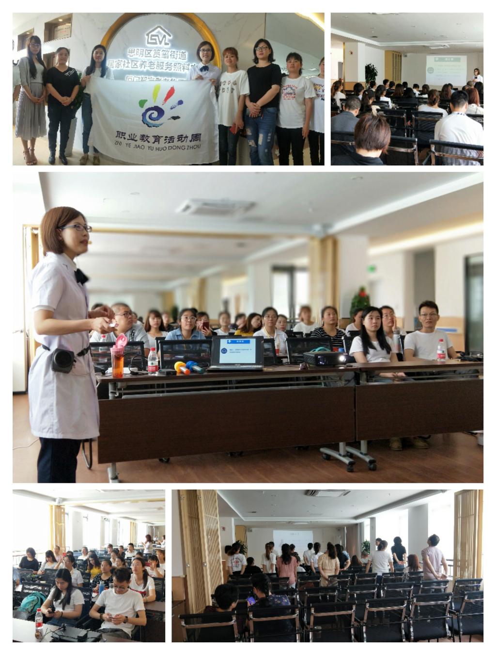 為了積極響應(yīng)2019年全國(guó)職業(yè)教育活動(dòng)周的號(hào)召,傳遞敬老愛親的傳統(tǒng)美德,進(jìn)一步提高社區(qū)助老員的居家養(yǎng)老綜合素質(zhì)和專業(yè)水平。5月13日至14日,來自臨床醫(yī)學(xué)系“肢體功能障礙康復(fù)功法創(chuàng)編”科技創(chuàng)新團(tuán)隊(duì)的徐麗鶯、鄭松老師,前往廈門智宇孝老集團(tuán)筼筜照料中心,對(duì)來自6個(gè)區(qū)的助老員進(jìn)行為期2天的培訓(xùn)。首批共有24名助老員參加系統(tǒng)的、有針對(duì)性的康復(fù)功法培訓(xùn)。