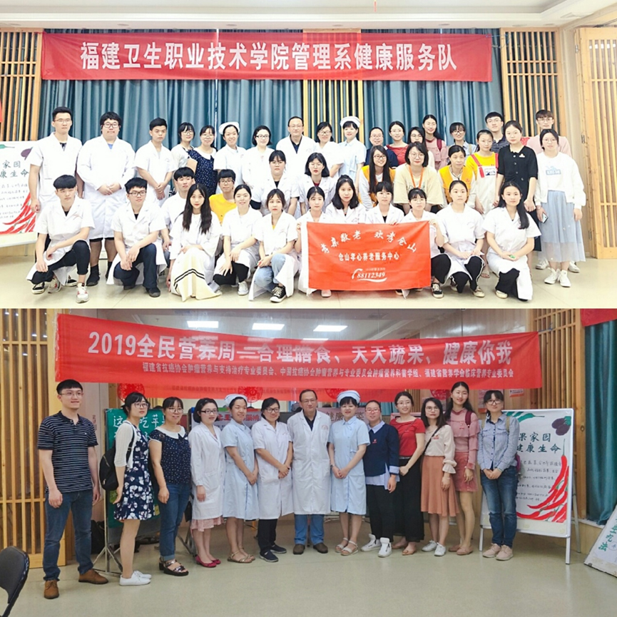立足校園,奉獻社會,展現(xiàn)健康管理系的時代精神風(fēng)貌。5月18日上午,我院管理系兩個教研室(健康管理、預(yù)防醫(yī)學(xué))老師帶領(lǐng)18級健康管理301班的學(xué)生志愿者,聯(lián)合腫瘤醫(yī)院營養(yǎng)學(xué)科資深專家王曉杰副主任醫(yī)師、鄭靜嫻主治醫(yī)師及林雅、楊眉主管護師,赴“建新居家養(yǎng)老中心”開展一場主題為“健康管理福州行”的健康保健系列社會服務(wù)。