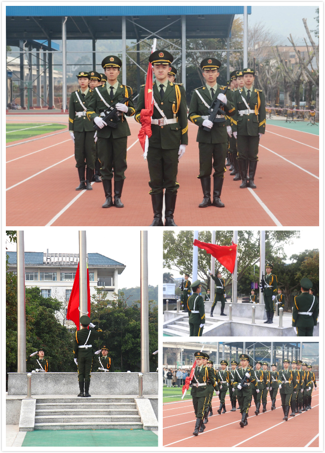 旭日初升,國旗護衛(wèi)隊隊員們邁著整齊有力的步伐護送鮮艷的五星紅旗入場,全體師生心懷崇高的敬意向國旗行注目禮,伴著莊嚴嘹亮的國歌,五星紅旗冉冉升起,迎風飄揚。