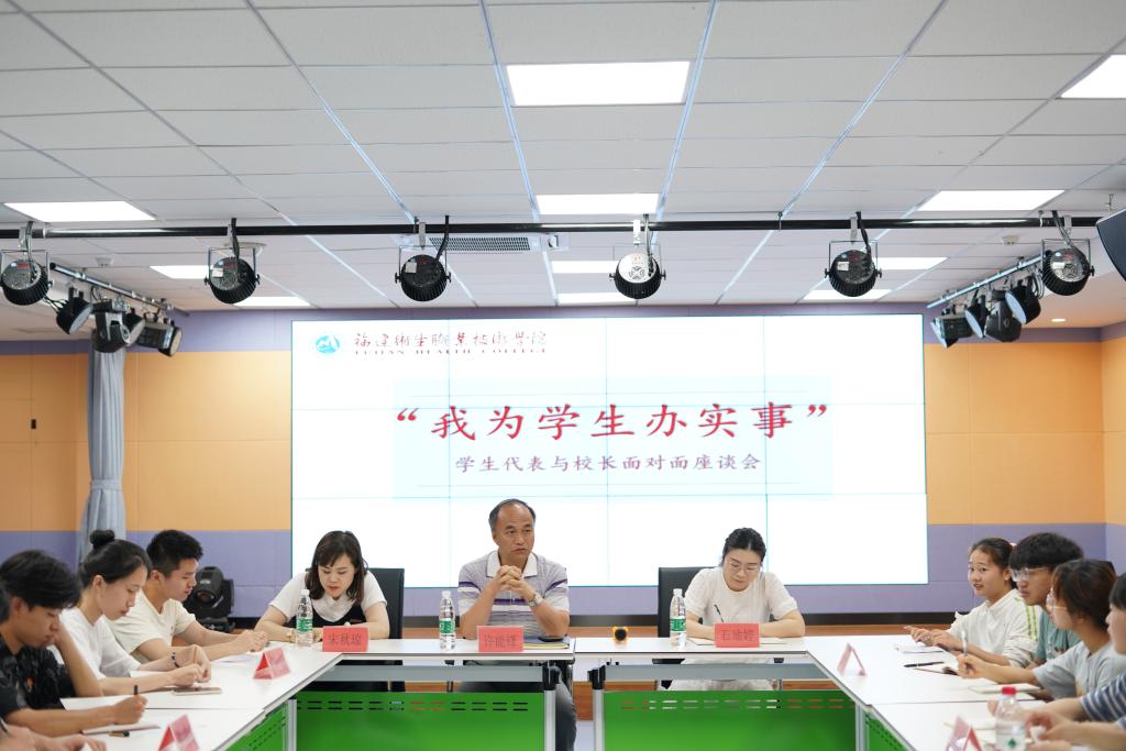 2021年5月20日下午,校學(xué)生會(huì)在團(tuán)委青年之家舉辦“我為學(xué)生辦實(shí)事”黨史教育實(shí)踐活動(dòng)調(diào)研暨院長(zhǎng)許能鋒與學(xué)生代表面對(duì)面座談會(huì)。許能鋒從第五次學(xué)生代表大會(huì)的代表中隨機(jī)抽取35名同學(xué)圍坐一堂,共話(huà)校園事,共議學(xué)校發(fā)展?;顒?dòng)由校團(tuán)委副書(shū)記石瑜婷主持。