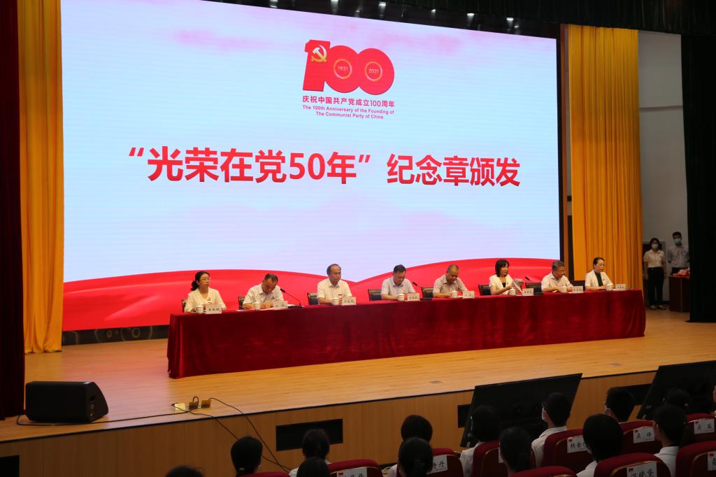 下午,巡回指導(dǎo)組一行列席參加了學(xué)校慶祝中國共產(chǎn)黨成立100周年暨“兩優(yōu)一先”表彰大會,現(xiàn)場觀摩學(xué)校頒發(fā)“光榮在黨50年”紀(jì)念章、執(zhí)教丹心傳承儀式、“兩優(yōu)一先”表彰、新入黨教師黨員、學(xué)生黨員代表入黨宣誓、黨委書記開設(shè)專題黨課、師生唱紅歌等活動。