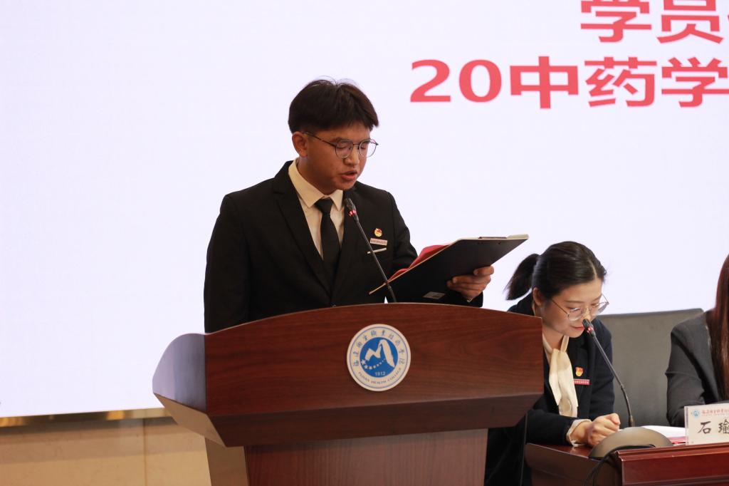 20中藥學(xué)302班李忠緒同學(xué)作為第九期青馬班學(xué)生代表莊嚴(yán)承諾:要時(shí)刻以青年馬克思主義者的標(biāo)準(zhǔn)來(lái)衡量自己,要認(rèn)真學(xué)習(xí)和領(lǐng)會(huì)黨的創(chuàng)新理論。