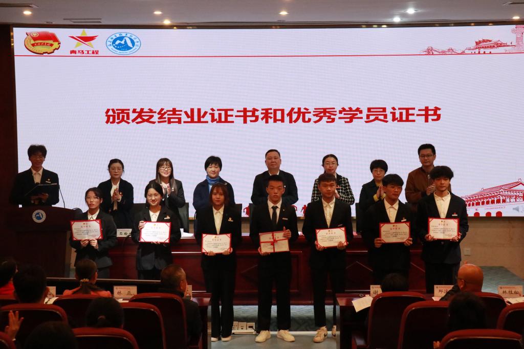 團(tuán)委副書(shū)記石瑜婷宣讀第八期“青馬工程”培訓(xùn)班結(jié)業(yè)名單與優(yōu)秀學(xué)員名單,與會(huì)領(lǐng)導(dǎo)為第八期學(xué)生代表頒發(fā)結(jié)業(yè)證書(shū)和優(yōu)秀學(xué)員證書(shū)。