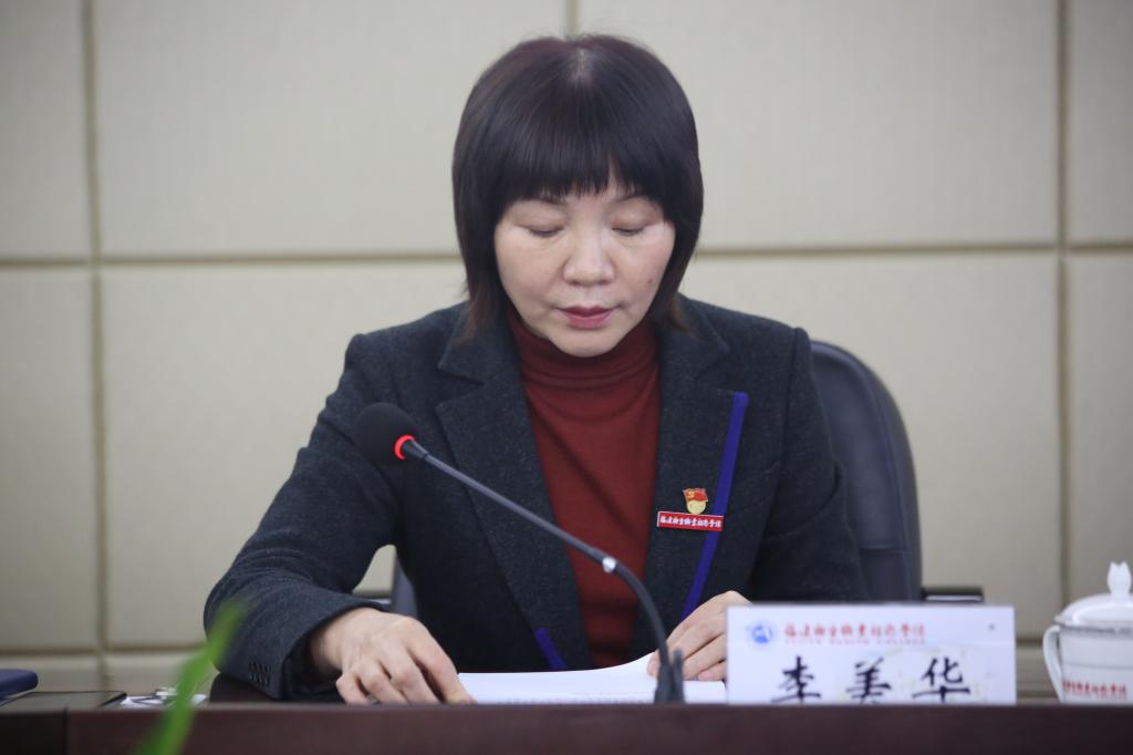 會上,李美華傳達了福建省教育系統(tǒng)黨史學(xué)習(xí)教育總結(jié)會精神。