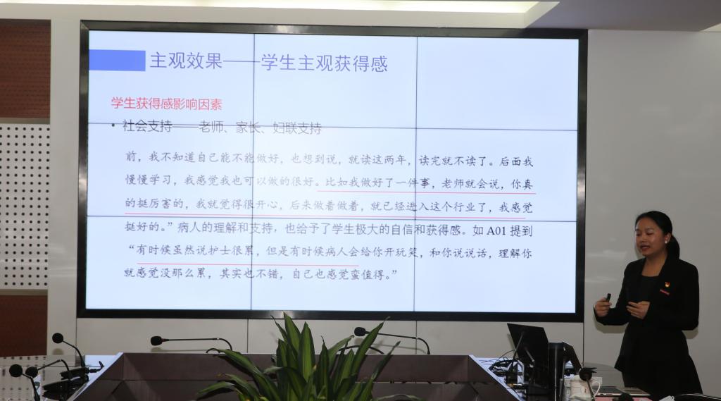 課題組從研究背景與問題、研究?jī)?nèi)容與方法、研究結(jié)論與對(duì)策、研究成果與影響、研究的不足之處五個(gè)方面詳細(xì)匯報(bào)了課題研究任務(wù)的完成情況。與會(huì)專家肯定了該課題的研究成效,認(rèn)為以醫(yī)藥衛(wèi)生類職業(yè)教育精準(zhǔn)扶貧為研究案例,探索學(xué)校、政府、企業(yè)、社會(huì)四方協(xié)同合作的模式與職業(yè)教育精準(zhǔn)扶貧的路徑與對(duì)策,一定程度上補(bǔ)充了目前醫(yī)藥衛(wèi)生類職業(yè)院校在政府、學(xué)校、企業(yè)及社會(huì)合作辦學(xué)研究的不足,對(duì)脫貧攻堅(jiān)工作也具有一定的理論指導(dǎo)和實(shí)踐推廣意義。建議課題后續(xù)研究中,可將已探索的校政企社多元共促模式擴(kuò)大應(yīng)用到其他專業(yè),并向同類職業(yè)院校輻射應(yīng)用。