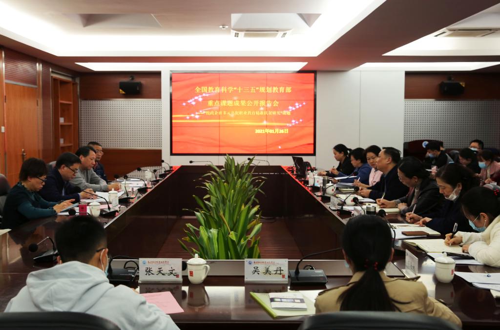 1月26日下午,由我校黨委書記曾武祈主持的全國(guó)教育科學(xué)“十三五”規(guī)劃教育部重點(diǎn)課題“校政企社多元共促職業(yè)教育精準(zhǔn)扶貧研究”成果公開報(bào)告會(huì)在我校舉行,參會(huì)的評(píng)議專家有閩江學(xué)院副院長(zhǎng)陳興明研究員、福建省教育科學(xué)研究所所長(zhǎng)吳明洪編審、福建省教育科學(xué)研究所基礎(chǔ)教育研究室主任郭少榕研究員、福建省教育科學(xué)研究所《教育評(píng)論》編輯部主任鐘建林副編審。會(huì)議由副院長(zhǎng)鄭翠紅主持,課題組負(fù)責(zé)人曾武祈、課題組成員、部分教師代表以及教務(wù)處、科研處相關(guān)部門人員出席本次報(bào)告會(huì)。