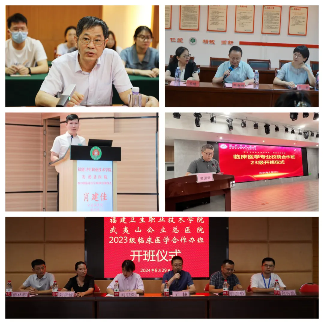 2024年9月,醫(yī)學(xué)院2023級臨床醫(yī)學(xué)專業(yè)武夷山市立醫(yī)院、邵武市立醫(yī)院、福建省老年醫(yī)院、寧德市醫(yī)院、安溪縣醫(yī)院5個校院合作班開班儀式在各教學(xué)醫(yī)院隆重舉行,醫(yī)學(xué)院領(lǐng)導(dǎo)班子、專業(yè)老師、輔導(dǎo)員分別到各醫(yī)院參加開班儀式。