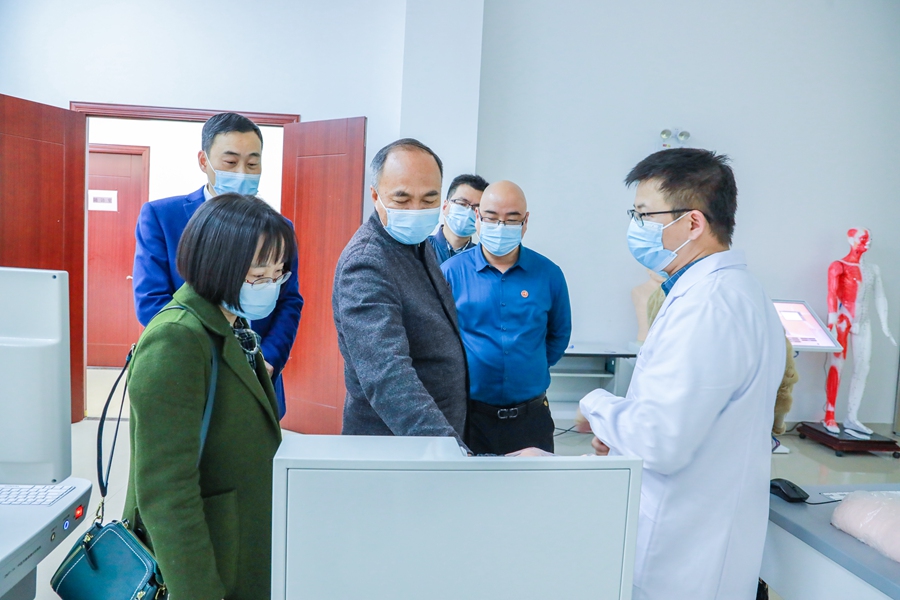 開班儀式結(jié)束后,李朝暉帶領(lǐng)許能鋒等到醫(yī)院各科室走訪參觀。