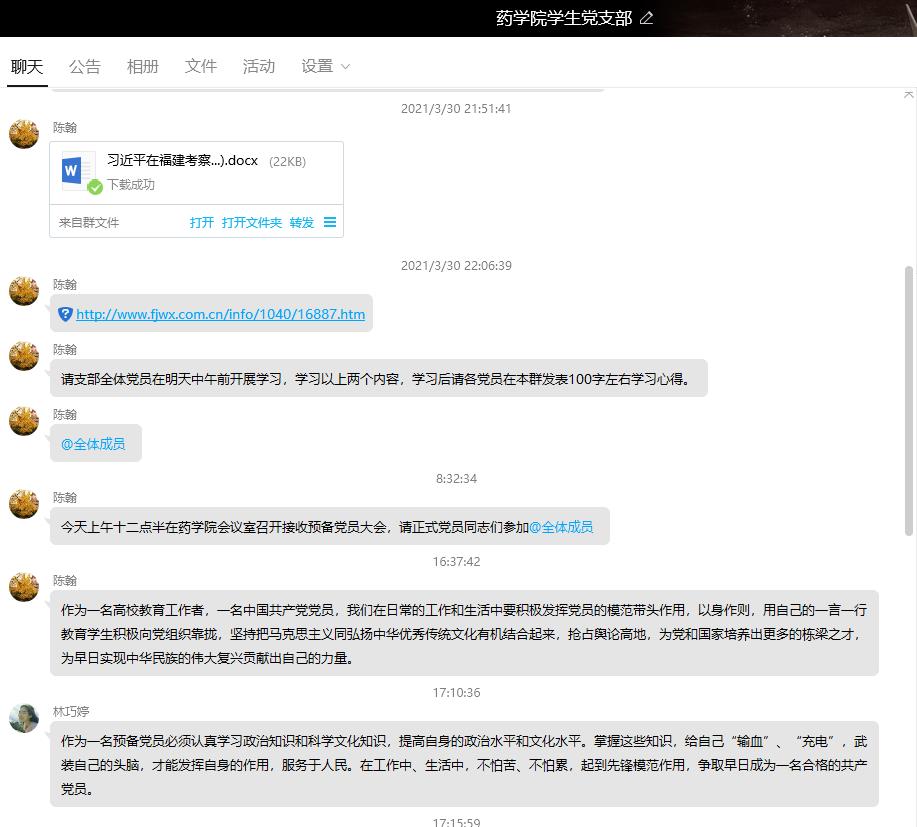 3月31日,藥學院學生黨支部召開黨員大會,學習習近平總書記來閩考察重要講話精神,支部書記陳翰主持會議。