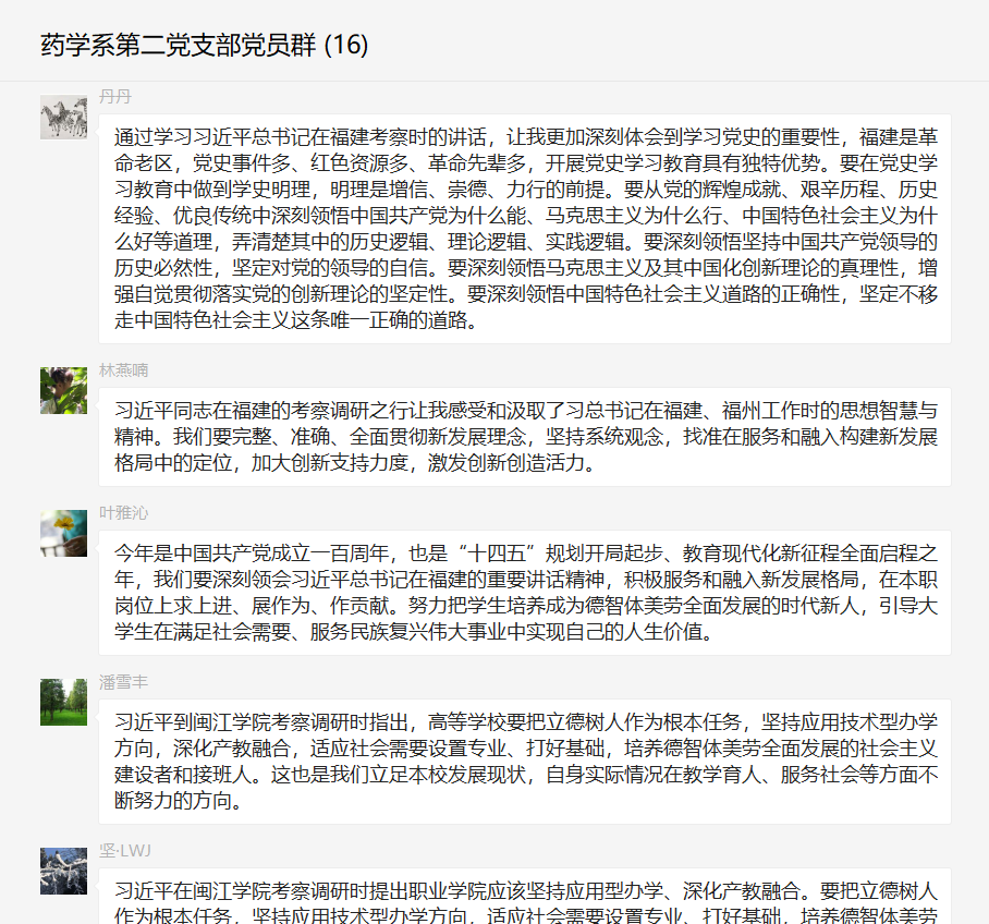 支部黨員在完成自學后踴躍發(fā)言,紛紛表示要充分利用福建作為革命老區(qū)的獨特優(yōu)勢加強黨史學習,深刻領(lǐng)悟堅持中國共產(chǎn)黨領(lǐng)導的歷史必然性,真正達到“明理、增信、崇德、力行”成效。同時,通過本次學習進一步明確了職業(yè)教育未來的發(fā)展方向,增強了責任感與緊迫感,今后將凝心聚力、抓住機遇、只爭朝夕,積極服務和融入新發(fā)展格局,在本職崗位上求上進、展作為、作貢獻!