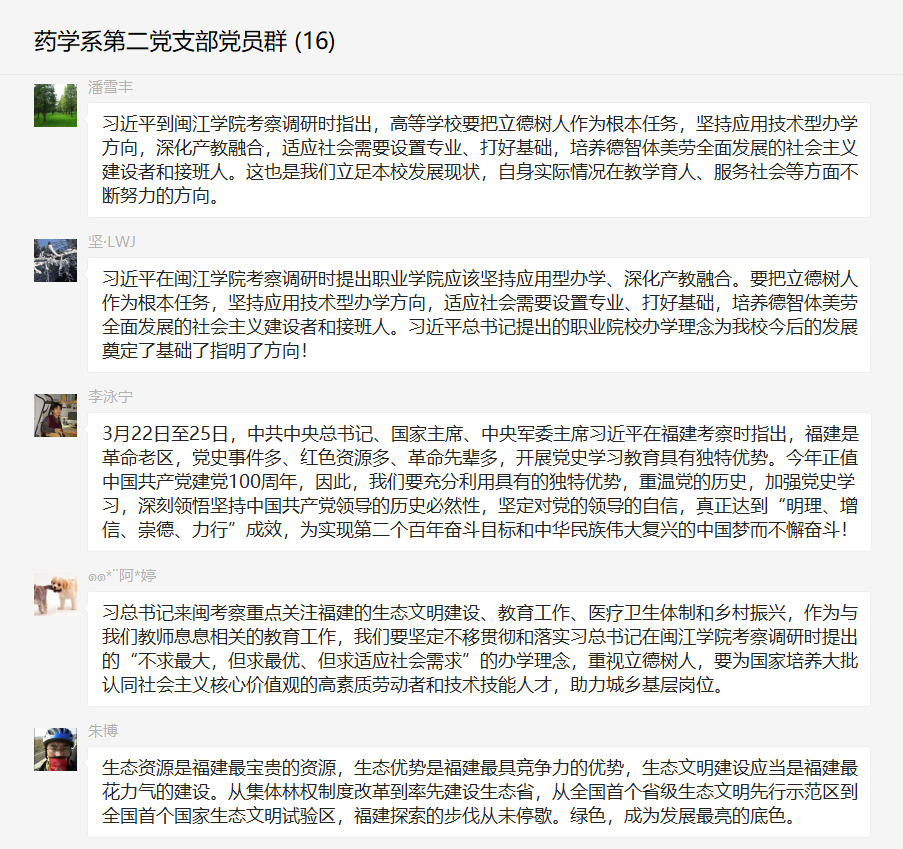 為學習貫徹習近平總書記在福建考察調(diào)研時的重要講話精神,藥學院第二黨支部于2021年3月30日開展線上專題學習。本次專題學習由支部書記劉丹丹同志主持。
