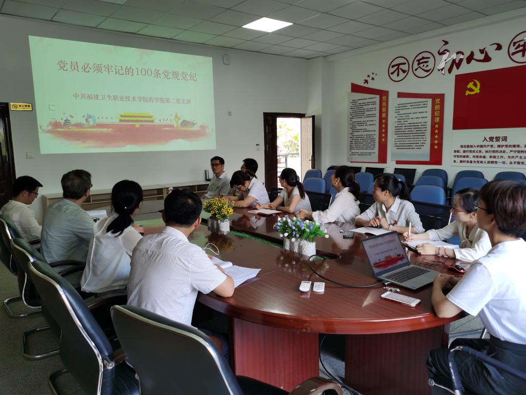 為了進(jìn)一步學(xué)習(xí)貫徹《中國共產(chǎn)黨紀(jì)律處分條例》,嚴(yán)守黨紀(jì)上遠(yuǎn)離違紀(jì)紅線,同時(shí)為了進(jìn)一步全面貫徹黨的教育方針,落實(shí)立德樹人根本任務(wù),藥學(xué)院第二黨支部于2021617日召開專題學(xué)習(xí)會(huì),深入學(xué)習(xí)《黨員必須牢記的100條黨規(guī)黨紀(jì)——解讀》(以下簡稱《100條黨紀(jì)黨規(guī)》)與《中國共產(chǎn)黨普通高等學(xué)校基層組織工作條例》(以下簡稱《條例》)。本次專題學(xué)習(xí)由藥學(xué)院第二黨支部書記劉丹丹同志主持。