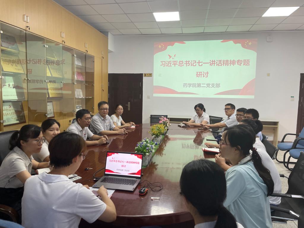 2021年7月1日,慶祝中國(guó)共產(chǎn)黨成立100周年大會(huì)在北京天安門廣場(chǎng)隆重舉行。中共中央總書記、國(guó)家主席、中央軍委主席習(xí)近平發(fā)表重要講話。藥學(xué)院第二黨支部全體黨員在大會(huì)直播結(jié)束后于藥學(xué)院會(huì)議室集中,圍繞習(xí)近平總書記“七一”重要講話開展了專題研討。本次專題研討由支部書記劉丹丹同志主持。