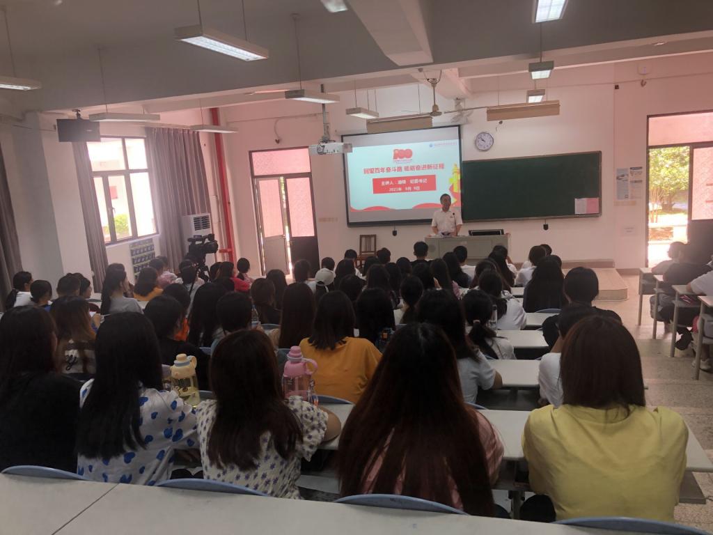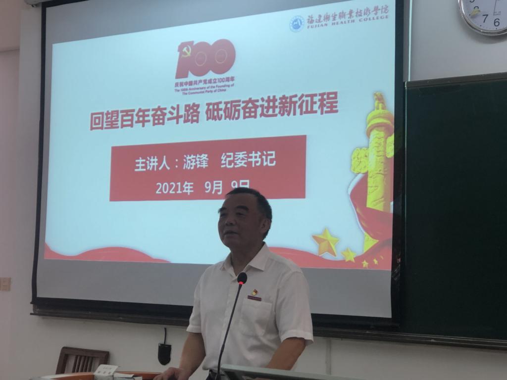 游鋒從回望:豐功偉績(jī) 恢宏史詩(shī);賡續(xù):精神血脈 代代相傳;借鑒:以史為鑒 開(kāi)創(chuàng)未來(lái)三個(gè)方面講述了過(guò)去一百年中國(guó)共產(chǎn)黨團(tuán)結(jié)帶領(lǐng)中國(guó)人民為實(shí)現(xiàn)中華民族偉大復(fù)興進(jìn)行的一切奮斗、一切犧牲、一切創(chuàng)造,以及在百年新起點(diǎn)的中國(guó)共產(chǎn)黨正團(tuán)結(jié)帶領(lǐng)中國(guó)人民以不可阻擋的步伐邁向偉大復(fù)興。游鋒還帶領(lǐng)大家回顧了我校為創(chuàng)建“特色鮮明,省內(nèi)一流,國(guó)內(nèi)領(lǐng)先”的高水平醫(yī)藥衛(wèi)生類高職院校做出的努力,并向同學(xué)們展示了學(xué)校新一輪發(fā)展的設(shè)想與藍(lán)圖。最后他希望同學(xué)們作為實(shí)現(xiàn)中華民族偉大復(fù)興的先鋒力量,要以實(shí)現(xiàn)中華民族偉大復(fù)興為己任,弘揚(yáng)“敬佑生命、救死扶傷、甘于奉獻(xiàn)、大愛(ài)無(wú)疆”的醫(yī)者精神,勤勉奮進(jìn),勇于擔(dān)當(dāng),不負(fù)黨和人民的殷切期望!