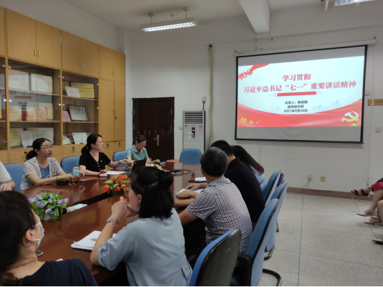 此次黨課宣講,陳俊穎先結(jié)合短視頻,帶領(lǐng)黨員同志重溫了慶祝中國共產(chǎn)黨成立100周年大會的盛況。接下來,她從 “七一”重要講話的精神解讀、四個偉大成就、“九個必須”的歷史經(jīng)驗和重要要求、“一個號召”等四個方面展開黨課內(nèi)容,引導(dǎo)黨員同志深入學(xué)習(xí)習(xí)近平總書記重要講話精神。她特別強(qiáng)調(diào),偉大建黨精神是我們黨的寶貴財富,黨員教師要弘揚好偉大建黨精神,堅定理想信念、立足崗位、守正創(chuàng)新,用實際行動踐行立德樹人根本任務(wù),引導(dǎo)青年成長成才。