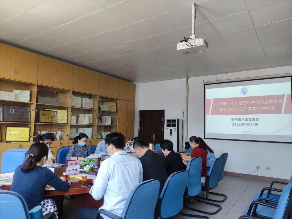 2022年4月14日,校黨委委員黃銘珊帶隊黨委組織統(tǒng)戰(zhàn)部副部長謝宗穎,黨委宣傳部工作人員高施,醫(yī)學院黨總支專職組織員陳恩平一行4人,赴醫(yī)學技術(shù)系黨總支開展2022年上半年全面從嚴治黨主體責任暨意識形態(tài)工作責任制落實情況檢查。醫(yī)學技術(shù)系黨政領(lǐng)導班子成員、總支委員參加本次督查。