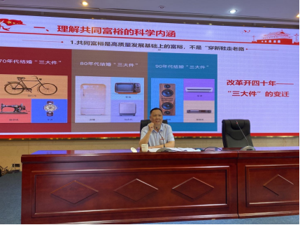 這堂形勢與政策課引起了熱烈反響,同學們認真聽講,不時記下筆記。“你知道70年代、80年代、90年代中國家庭的‘三大件’嗎?”“你知道70年代、80年代、90年代、21世紀中國大學生的入學裝備‘三大件’嗎?”……在互動環(huán)節(jié),曾武祈書記與現(xiàn)場學生雙向親切交流,遠的、近的,陌生的、熟悉的,三代人記憶的縮影鮮活地詮釋了“共富”的時代之變。他還向部分同學贈送由他主編的《教育點燃希望》書籍,勉勵大家聽黨話、跟黨走,努力學習知識與技能,樹立“共富”的自信,掌握“共富”的本領(lǐng)。