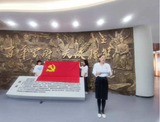 在學(xué)生第二黨支部書記蔣程序同志帶領(lǐng)下,敖昌群等預(yù)備黨員面向黨旗,舉起右手,莊嚴(yán)宣誓,用鏗鏘有力的聲音許下新時(shí)代共產(chǎn)黨人鄭重的承諾。擲地有聲的誓言響徹校史館,印證百年閩衛(wèi)院人的使命擔(dān)當(dāng)。