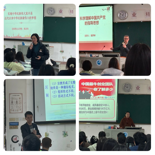 本期培訓(xùn)班邀請(qǐng)馬克思主義學(xué)院老師為學(xué)員講授黨的基本理論知識(shí)。陳洪月老師以《實(shí)現(xiàn)中華民族偉大復(fù)興是近代以來中華民族最偉大的夢(mèng)想》為題,宣講習(xí)近平新時(shí)代中國(guó)特色社會(huì)主義思想;胡濟(jì)林老師以《科學(xué)理解中國(guó)共產(chǎn)黨的指導(dǎo)思想》為題,引導(dǎo)學(xué)員們?nèi)鎸W(xué)習(xí)黨的指導(dǎo)思想;龍慧以時(shí)間為脈絡(luò),深入解讀《黨史上的三個(gè)歷史決議》;江洪老師講授《馬克思主義宗教理論與黨的宗教政策》,引導(dǎo)學(xué)員們樹立科學(xué)世界觀。