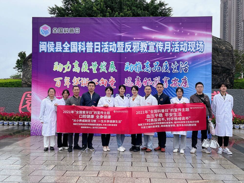 為推進(jìn)慢病知識的基層普及,提高基層群眾的慢病管理能力,充分發(fā)揮黨員的先鋒模范作用、發(fā)揮專業(yè)教師特長,2021年10月22日,醫(yī)學(xué)系黨總支第一黨支部黨員、內(nèi)科教研室教師王芳、彭小蕊隨我校繼續(xù)教育學(xué)院、閩侯縣科協(xié)一行赴閩侯縣民俗園開展“高血壓病防治”科普、義診活動。