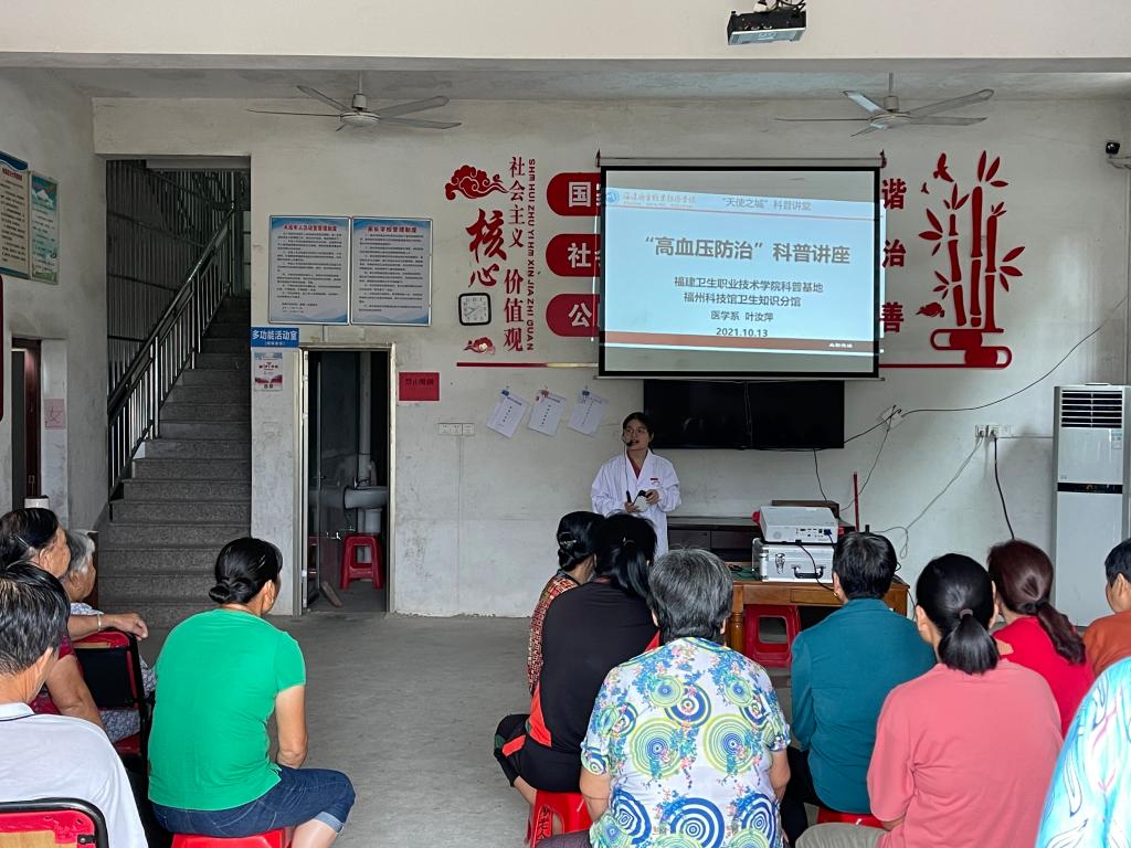 為充分發(fā)揮黨員的先鋒模范作用,普及慢病知識(shí),提高基層群眾對(duì)慢病的管理能力,2021年10月13日,醫(yī)學(xué)系第三黨支部黨員教師葉汝萍隨閩侯縣科協(xié)一行赴閩侯縣小箬鄉(xiāng)湖柄村開(kāi)展“高血壓病防治”科普講座。