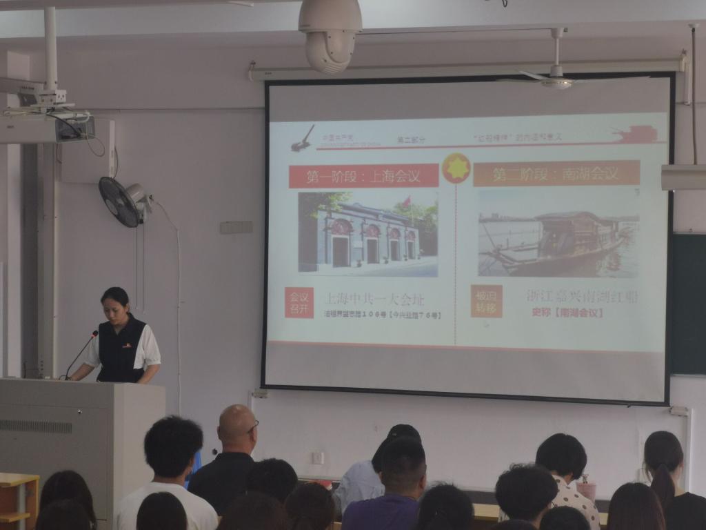 系黨總支副書記陳潔為全體黨員和入黨積極分子作黨史學(xué)習(xí)教育專題宣講,用“紅船精神”教育黨員和青年學(xué)生,要立足本職,盡心盡職,勇于擔(dān)當(dāng),走好新的“長征路”。