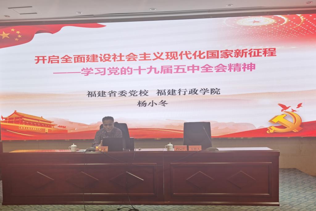 為深入學(xué)習(xí)領(lǐng)會習(xí)近平新時代中國特色社會主義思想和黨的十九屆五中全會精神,深刻認(rèn)識我國當(dāng)前社會發(fā)展新階段新特征,增強“四個意識”、堅定“四個自信”、做到“兩個維護(hù)”,2021年3月19日,福建省委黨校、福建行政學(xué)院楊小冬教授應(yīng)邀為我校馬克思主義講壇開設(shè)《開啟全面建設(shè)社會主義現(xiàn)代化國家新征程——學(xué)習(xí)黨的十九屆五中全會精神》的專題講座。講座由馬克思主義學(xué)院院長熊美蘭主持,馬院全體思政課教師和健康管理系入黨積極分子參加了講座。