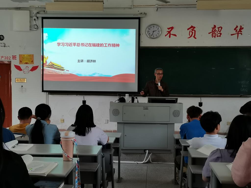 2021年4月23日下午,胡濟林老師在護理107教室為20康復301、302班舉行“學習習近平總書記在福建的工作精神”專題宣講。宣講中,胡濟林首先簡要介紹了習近平總書記在閩工作17年半的基本情況,接著從“為官一任 造福一方”“重視發(fā)展高等教育”“懲治腐敗 整頓吏治”等三個方面講述習近平總書記當年在福建的一些感人故事以及從中折射出習近平總書記的治國理念和工作作風。胡濟林通過理實結合的方法,用抑揚頓挫的語言,再現(xiàn)習近平總書記當年場景,讓同學們感受到濃烈的公仆情懷、求實作風、奮斗精神。