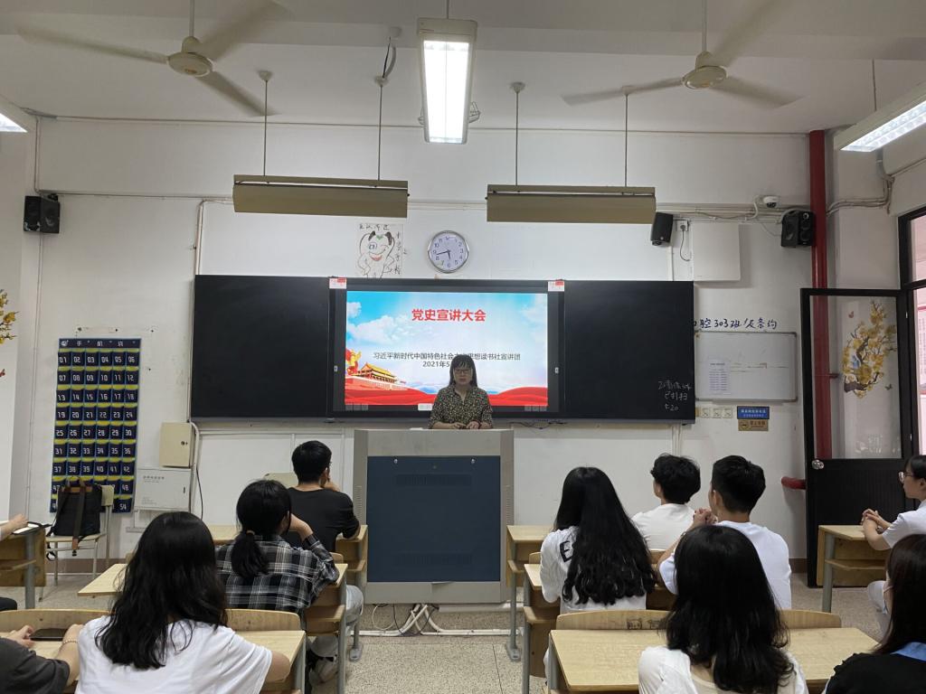 2021年5月20日傍晚,習(xí)近平新時(shí)代中國(guó)特色社會(huì)主義思想讀書(shū)社宣講團(tuán)在教學(xué)樓104組織開(kāi)展黨史宣講培訓(xùn)。