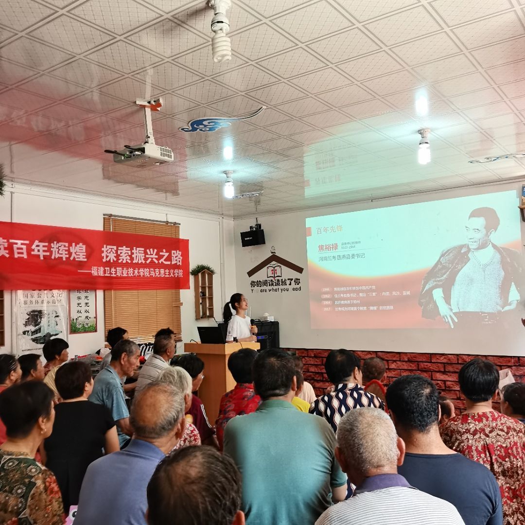 為深入學(xué)習(xí)貫徹習(xí)近平新時代中國特色社會主義思想,引領(lǐng)我校學(xué)生在生動的社會實踐中感悟中國共產(chǎn)黨建黨百年輝煌、感受新時代使命、擔當青春責任,21位來自不同醫(yī)學(xué)專業(yè)的福建衛(wèi)生職業(yè)技術(shù)學(xué)院習(xí)近平新時代中國特色社會主義思想讀書社社員,在馬克思主義學(xué)院熊美蘭、羅蕓、來朋珍、張?zhí)煳牡?位教師指導(dǎo)下,組建“馬上逐夢”實踐隊,于2021年7月4日-6日赴閩侯縣新坡村開展“賡續(xù)百年輝煌,探索振興之路”為主題的暑期“三下鄉(xiāng)”社會實踐,延拓讀書社社會大課堂,走進“大思政課”。本次活動圍繞黨史學(xué)習(xí)宣傳、國情社情觀察、健康知識宣講、愛心醫(yī)療等方面展開。