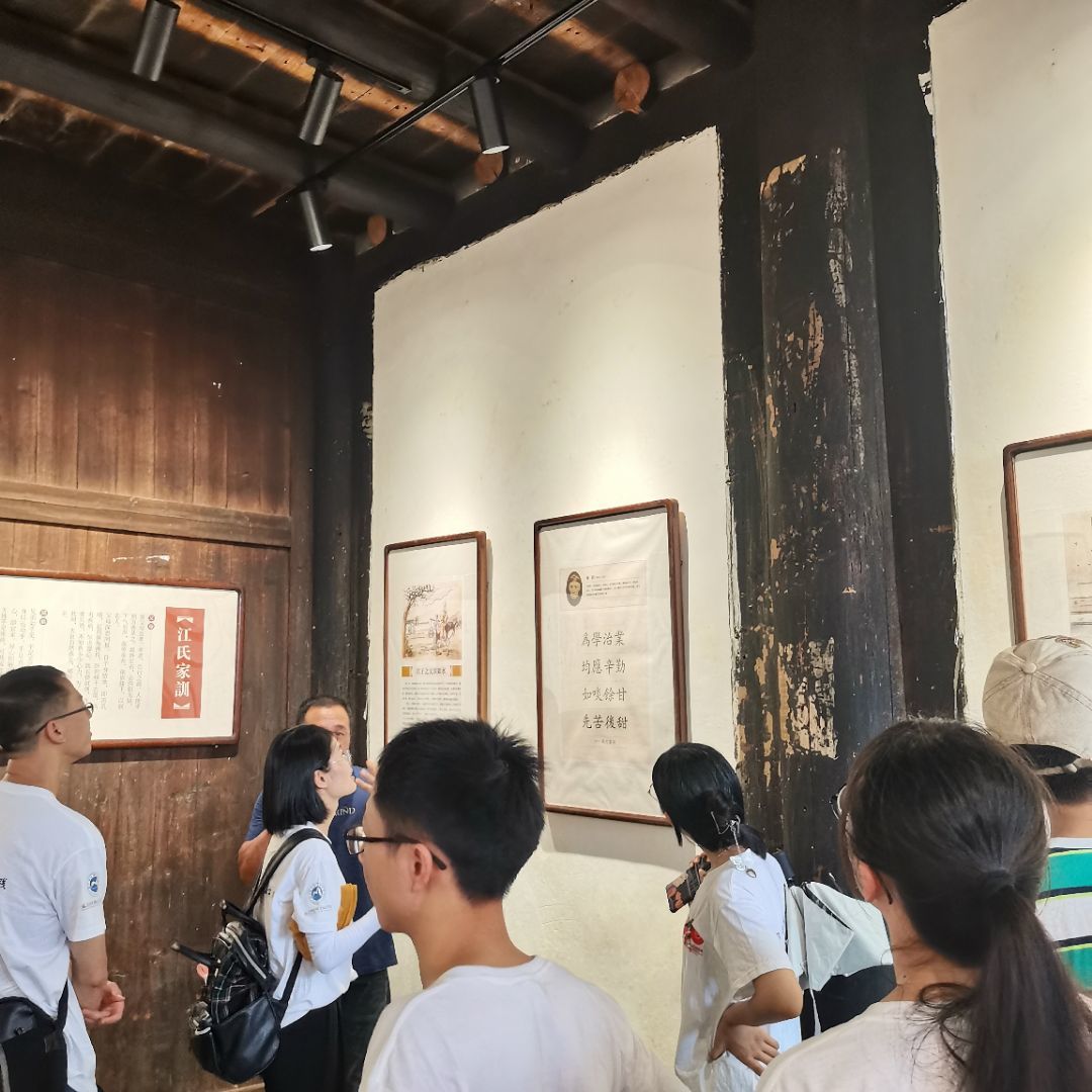 靜默不言的古厝,承載著一方“獨家”歷史記憶,彰顯了一方文化無限魅力。始建于清乾隆年間的古厝文化是新坡村的文化瑰寶,新坡古厝中又以建于清乾隆年間的永奮永襄厝最為典型,1992年被列為閩侯縣文物保護單位。實踐隊以“關(guān)于古厝文化在鄉(xiāng)村振興中的作用”為研究主題,在村書記江愛盛的帶領(lǐng)下,“五進”古厝深入調(diào)研。古厝廳堂寬敞、墻體深厚、海石為地、風(fēng)洞送涼、風(fēng)雅角亭、回音傳話,科學(xué)與精巧中無不彰顯古人的杰出智慧和勤勞勇敢,無不讓人感慨于“工匠精神”。古厝內(nèi)還設(shè)有家風(fēng)家訓(xùn)館,圖文并茂中述說著江氏代代相傳齊家教子、交友處世、任事用權(quán)等方面的優(yōu)良家風(fēng)。隊員們駐足停留,細細品味其深厚人文底蘊,思索著如何讓古建筑“活”起來、古厝文化遺產(chǎn)煥發(fā)新生。通過現(xiàn)場考察調(diào)研,實踐隊感受了當?shù)卮迕駥π缕鹿咆鹊臐M滿自豪感,對古厝發(fā)展的深切期盼和對古厝保護的強烈責任感。新坡古厝的魅力值得探尋,新坡古厝的故事值得講好。正如習(xí)近平總書記所說:“保護好、傳承好、利用好這些寶貴財富,是我們的共同責任,是人類文明賡續(xù)和世界可持續(xù)發(fā)展的必然要求。”