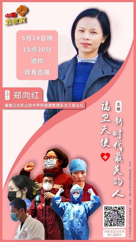 接著,鄭老師介紹到,在防控疫情期間,我院128名校友馳援湖北抗疫一線,為抗擊疫情取得階段性的勝利貢獻(xiàn)了福建衛(wèi)院人的一份力量。她擷取其中的幾位來講述他們?cè)谠鯌?zhàn)疫中所發(fā)生的故事,有細(xì)微之處傳愛心的南丁格爾獎(jiǎng)?wù)芦@得者、我院前副院長李紅教授,有援非歸來又轉(zhuǎn)戰(zhàn)湖北的護(hù)師李賜娟,有斷發(fā)抗疫顯決心的 “95”后護(hù)士張曉嵐,有熱血男兒顯無畏的詹仕鑫等等,為他們的英勇奮戰(zhàn)感到深深驕傲。向紅老師同時(shí)還談到88級(jí)醫(yī)士專業(yè)校友俞傳增院長、08級(jí)臨床醫(yī)學(xué)專業(yè)校友陳兆龍?jiān)洪L等奮戰(zhàn)在基層,夜以繼日,率先垂范的校友故事,講述基層衛(wèi)生工作者全力以赴投入防控工作所踐行的使命與擔(dān)當(dāng)。