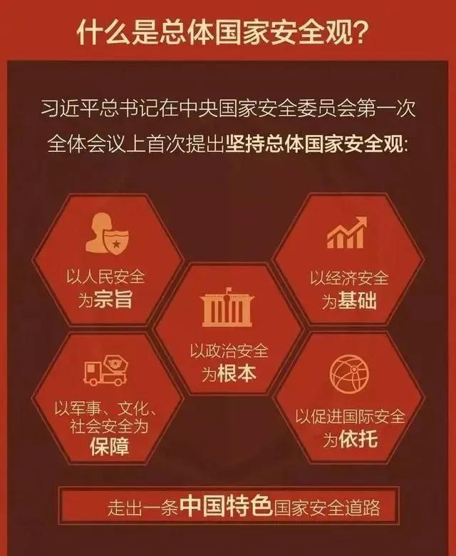 2014年4月15日,習(xí)近平總書(shū)記主持召開(kāi)中央國(guó)家安全委員會(huì)第一次會(huì)議并發(fā)表重要講話,指出我們要準(zhǔn)確把握國(guó)家安全形勢(shì)變化新特點(diǎn)新趨勢(shì),堅(jiān)持總體國(guó)家安全觀,走出一條中國(guó)特色國(guó)家安全道路。