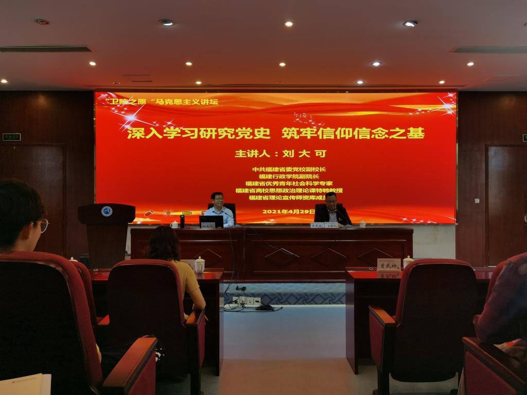 黨的歷史是最生動(dòng)、最有說服力的教科書。為深入學(xué)習(xí)貫徹落實(shí)習(xí)近平總書記在黨史學(xué)習(xí)教育動(dòng)員大會(huì)上重要講話精神,貫徹落實(shí)省委部署的“再學(xué)習(xí)、再調(diào)研、再落實(shí)”活動(dòng),2021年4月29日,福建省委黨校副校長(zhǎng)、福建行政學(xué)院副院長(zhǎng)劉大可教授受邀作《深入學(xué)習(xí)研究黨史 筑牢信仰信念之基》的黨史專題講座。講座由校黨委書記曾武祈主持,校領(lǐng)導(dǎo)、中層干部、校團(tuán)委和馬克思主義學(xué)院等師生代表參加了講座。