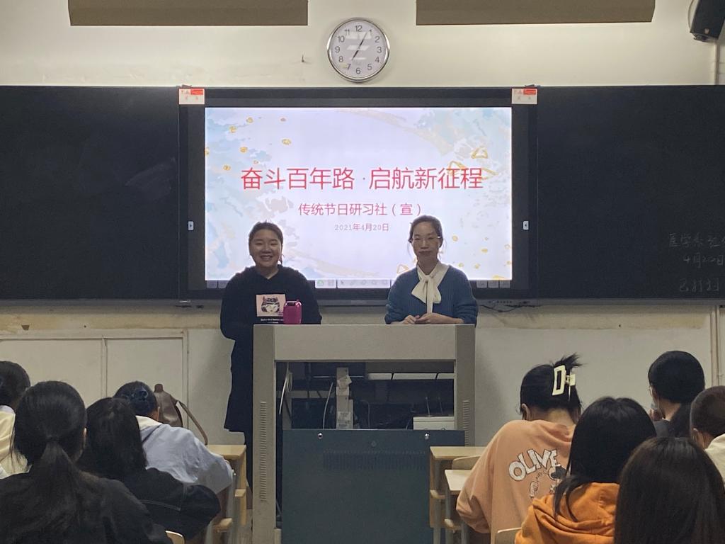 傳統(tǒng)節(jié)日研習(xí)社指導(dǎo)老師顏冰鳳、林美辰于4月20日晚上在教103召開了“百年黨史 精神永存”理論宣講會(huì)。此次理論宣講以時(shí)間軸脈絡(luò)為主線為同學(xué)們梳理和講解黨的百年歷史,從“建黨偉業(yè):初心使命的時(shí)代呼喚”到“革命抗戰(zhàn):初心使命的中流砥柱”再到“建國(guó)執(zhí)政:初心使命的發(fā)展奇跡”,每個(gè)部分都以翔實(shí)的數(shù)據(jù)案例展現(xiàn)并娓娓道來(lái)。