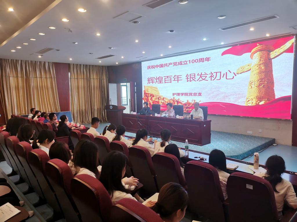 2021年5月6日,護理學院黨總支在實訓樓四樓報告廳舉行“輝煌百年 銀發(fā)初心”主題黨日活動。本次活動邀請了關工委主任嚴肅、副主任陳雄來校授課。副校長黃銘珊、學生工作部部長宋維,組織統(tǒng)戰(zhàn)部、人事處、護理學院黨總支全體教職工黨員及護理學院黨總支入黨積極分子共200余人參加了此次活動。