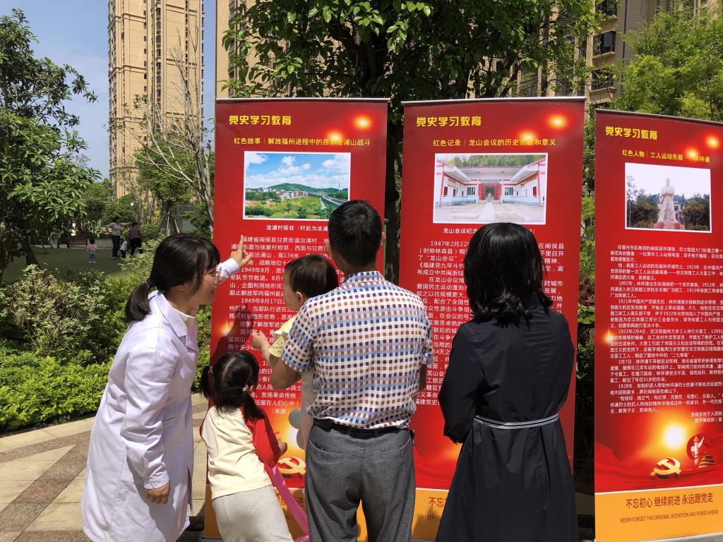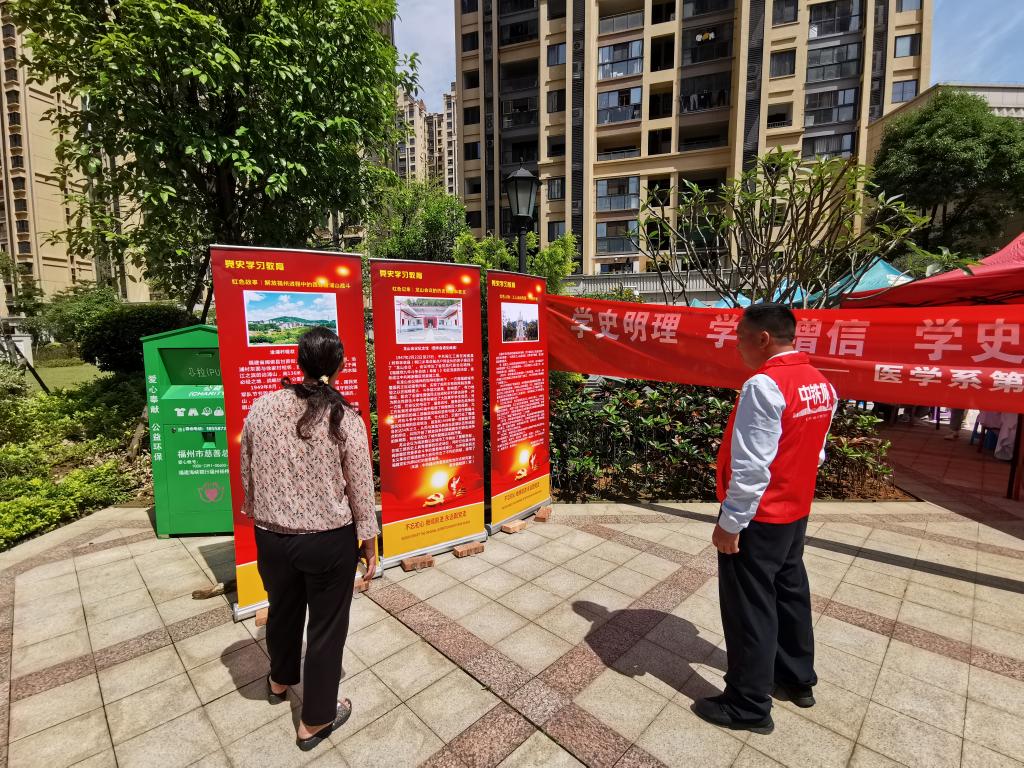 為貫徹落實(shí)習(xí)近平總書記來閩考察重要講話精神,扎實(shí)開展“再學(xué)習(xí)、再調(diào)研、再落實(shí)”活動,發(fā)揮“雙帶頭人”教師黨支部工作室輻射作用,結(jié)合2021年全國科技活動周的通知要求, 2021年5月9日,醫(yī)學(xué)系第四黨支部教師黨員、醫(yī)學(xué)基礎(chǔ)部部分教師和院紅十字會青年團(tuán)員到閩侯荊溪社區(qū)中鐵城,為社區(qū)居民宣揚(yáng)黨史學(xué)習(xí),開展“學(xué)黨史 普科技 送健康 知感恩 ”健康科普進(jìn)社區(qū)主題黨日活動。