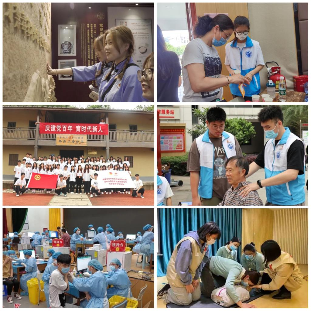 (三)開展“我為群眾/師生辦實事”實踐活動。我校學生志愿團前往鋪前社區(qū)開展以“建黨百年守初心,健康義診志愿行”為主題的醫(yī)學知識、新冠疫苗科普及黨史宣講活動,并對社區(qū)內(nèi)的老人們進行測血壓、推拿、刮痧、拔火罐等一系列義診,解決群眾的操心事、煩心事、揪心事,深入基層、服務百姓,傳遞關懷和溫暖。此外,我校護理學院第二黨支部的老師協(xié)同校紅十字會志愿者前往到福建幼兒師范高等??茖W校附屬象園幼兒園開展急救知識宣教活動,用知識傳播愛心;青年志愿者走進福建農(nóng)業(yè)職業(yè)技術學院、福建船政交通職業(yè)學院開展CPR急救教學、血壓測量、血型鑒定、中醫(yī)推拿、刮痧、拔罐等活動,用技術造福師生。