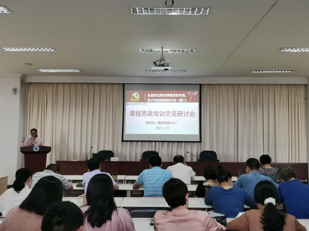 為深入貫徹落實(shí)教育部印發(fā)的《高等學(xué)校課程思政建設(shè)指導(dǎo)綱要》和《職業(yè)教育提質(zhì)培優(yōu)行動計(jì)劃(2020-2023年)》文件精神,全面推進(jìn)我校課程思政建設(shè),創(chuàng)新思想政治教育模式,2021年6月10日下午,教務(wù)處教師發(fā)展中心舉辦了課程思政培訓(xùn)交流研討會。