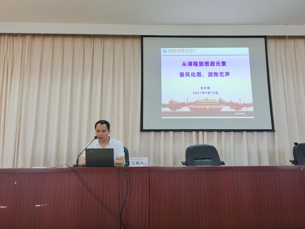 研討會分為兩個(gè)議程,首先由醫(yī)學(xué)系外科教研室主任劉景城老師和醫(yī)學(xué)技術(shù)系眼視光教研室主任張文賢老師分別作題為“從課程到思政——三線融合 理實(shí)一體 六步嬗變”和“從課程到思政元素——春風(fēng)化雨、潤物無聲”的培訓(xùn)心得分享。劉景城、張文賢兩位老師分別從不同視角介紹了在“全國職業(yè)院校課程思政布局、設(shè)計(jì)與實(shí)施高級研討會”中,培訓(xùn)專家對課程思政建設(shè)的指導(dǎo),更是結(jié)合了自身所教的專業(yè)和課程,介紹了其所在教學(xué)團(tuán)隊(duì)對《傳染病學(xué)》和《眼視光技術(shù)》課程的思政元素梳理,思政教育方法融入課堂教學(xué)的思考。