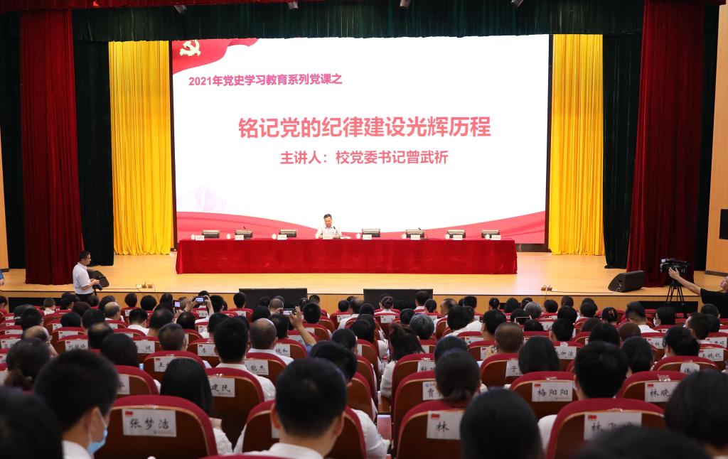 最后,校黨委書(shū)記曾武祈為全校黨員開(kāi)設(shè)一堂題為《銘記黨的紀(jì)律建設(shè)光輝歷程》的專(zhuān)題黨課。曾書(shū)記的的黨課讓大家認(rèn)識(shí)到,從黨紀(jì)的發(fā)展史中可以看出,嚴(yán)明的紀(jì)律是一個(gè)政黨精神面貌和組織力量的綜合體現(xiàn),更是中國(guó)共產(chǎn)黨堅(jiān)強(qiáng)無(wú)比領(lǐng)導(dǎo)力形成的重要因素。只有將紀(jì)律意識(shí)和內(nèi)涵要求入心入腦,才能增強(qiáng)執(zhí)行紀(jì)律的自覺(jué)性,確保黨員干部按照制度履職盡責(zé)、運(yùn)用制度謀事干事,用法規(guī)制度管權(quán)管事管人,更好地投身于學(xué)校的長(zhǎng)足發(fā)展。