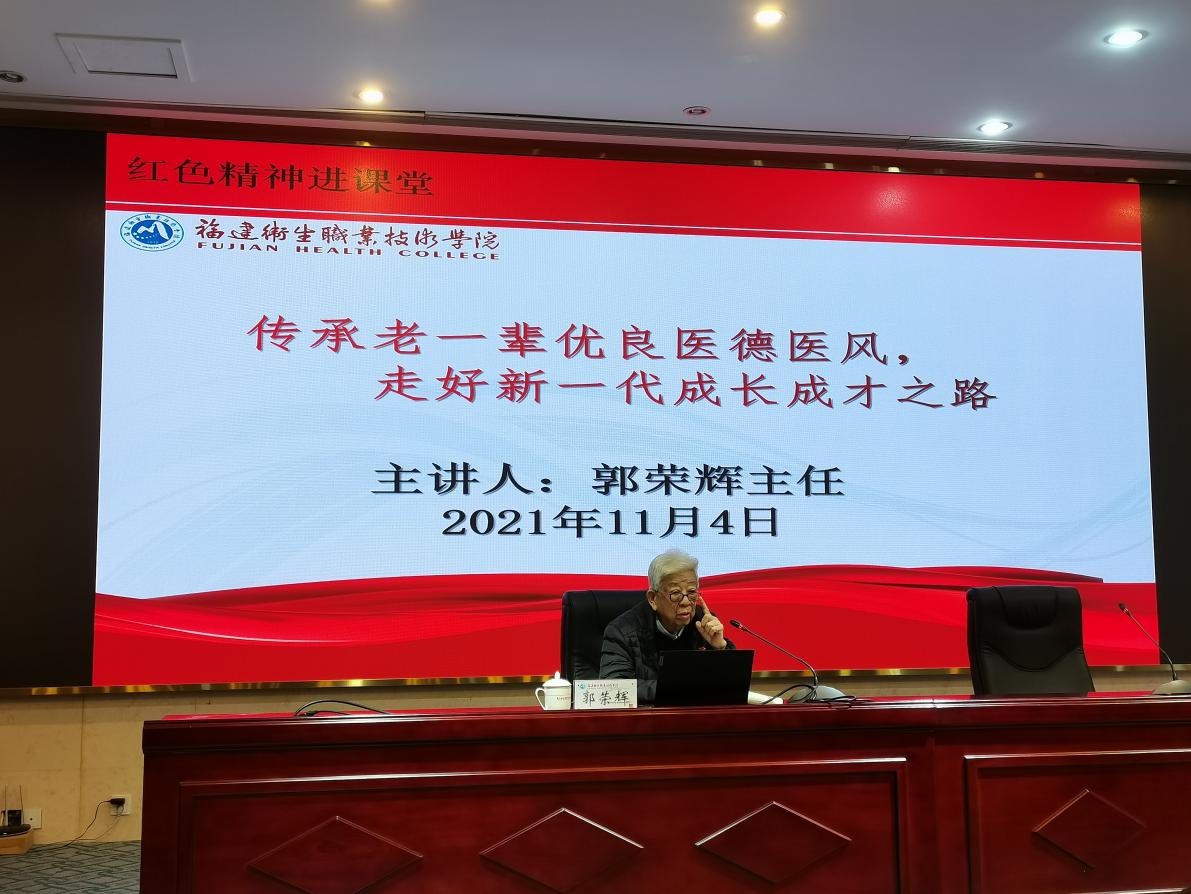 郭榮輝已年屆86歲高齡,他用自己64年忠守踐行黨員使命的人生履歷為師生帶來了生動的講座——《傳承老一輩優(yōu)良醫(yī)德醫(yī)風(fēng),走好新一代成長成才之路》。郭榮輝通過福建省附一醫(yī)院易自翔教授的從醫(yī)經(jīng)歷,向師生代表講述了這名曾榮獲國家科技進(jìn)步獎二等獎的醫(yī)務(wù)工作者如何磨礪崇高的醫(yī)德和精湛的醫(yī)術(shù),寄語青年醫(yī)學(xué)生應(yīng)當(dāng)成為一名讓病人懷念的大醫(yī),成為一個(gè)有愛國情操、有感恩情懷、有仁愛之心的人。郭榮輝還分享了自己的學(xué)習(xí)、生活經(jīng)驗(yàn),囑托青年學(xué)子在大學(xué)期間還要爭當(dāng)學(xué)生干部,夯實(shí)人生的實(shí)踐基礎(chǔ),積累人生的技能經(jīng)驗(yàn)。