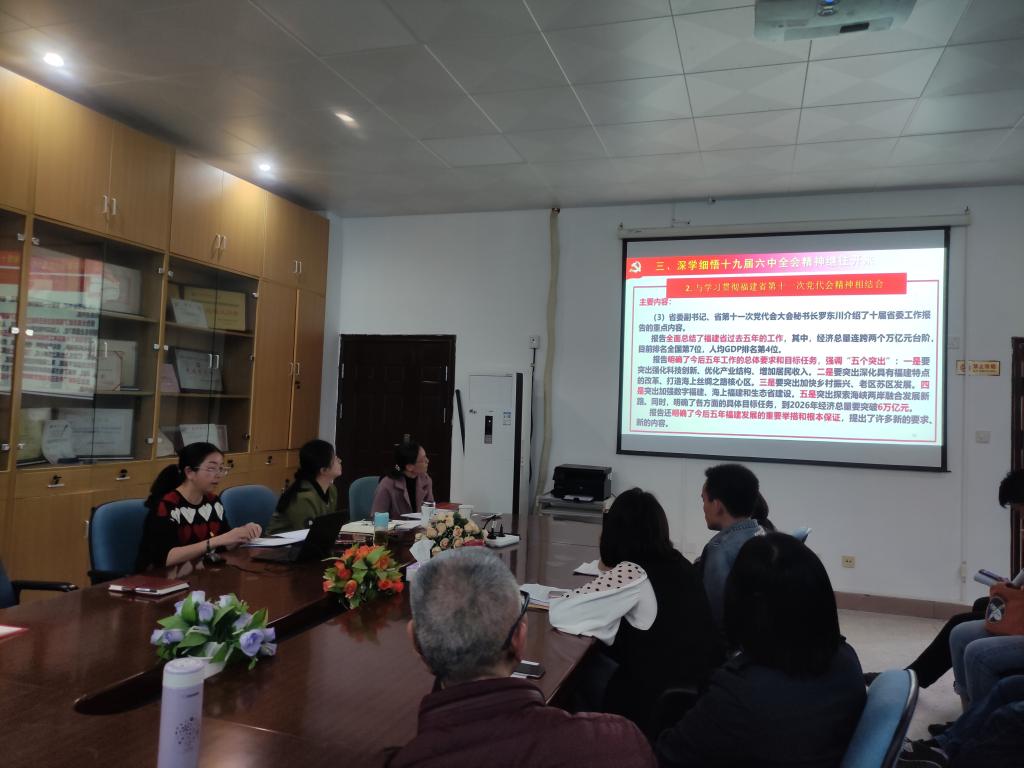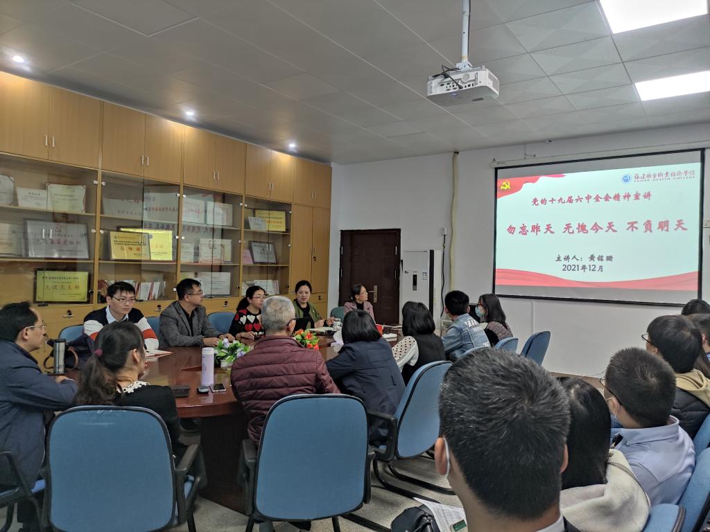 12月16日,副校長黃銘珊為醫(yī)學(xué)技術(shù)系黨員宣講黨的十九屆六中全會精神。