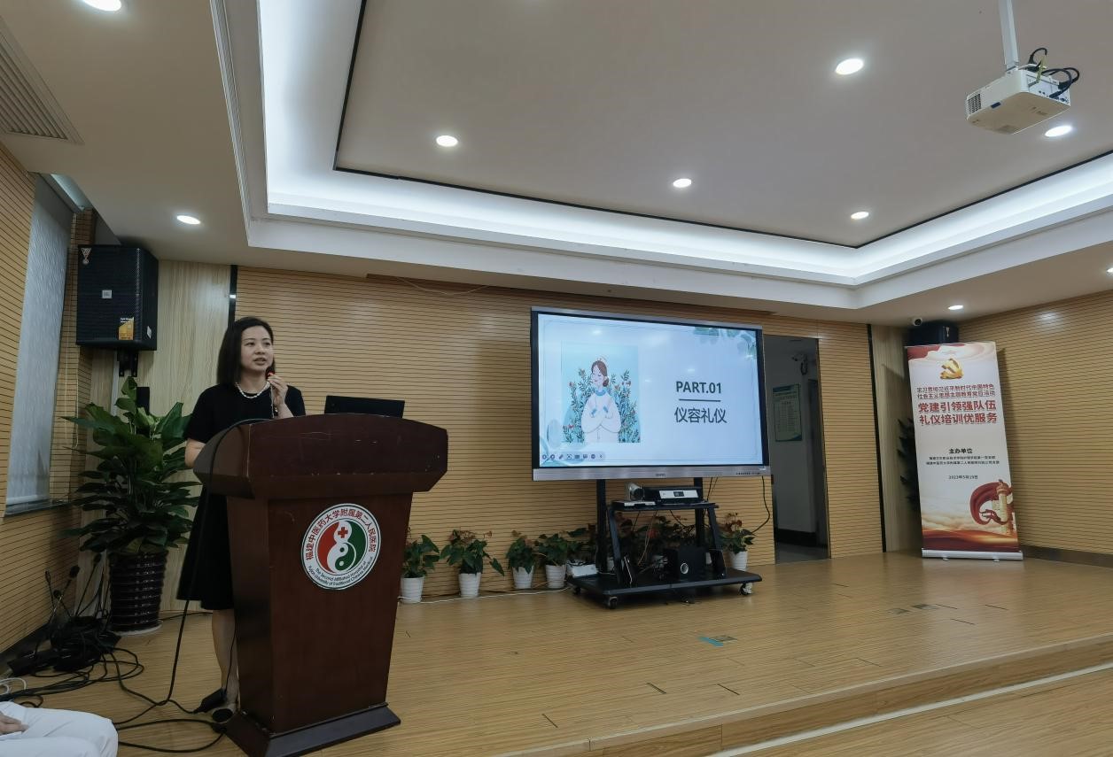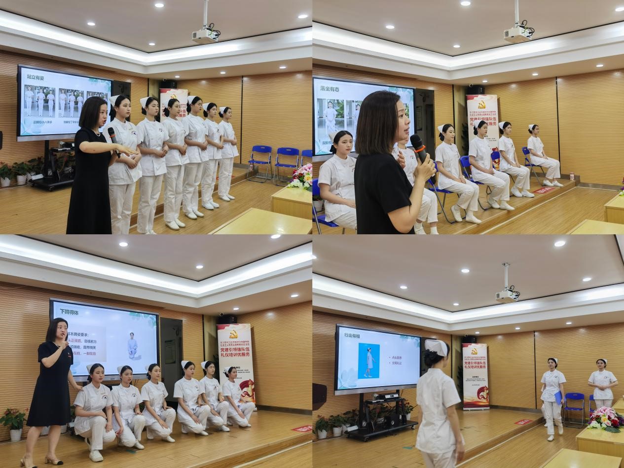 為貫徹落實(shí)黨的二十大精神,深入開(kāi)展學(xué)習(xí)貫徹習(xí)近平新時(shí)代中國(guó)特色社會(huì)主義思想主題教育,增強(qiáng)黨支部的執(zhí)行力和凝聚力,提升黨建工作的生命力和創(chuàng)造力,持續(xù)推進(jìn)支部建設(shè)與專(zhuān)業(yè)發(fā)展深度融合。2023年5月19日,護(hù)理學(xué)院第一黨支部開(kāi)展“黨建引領(lǐng)強(qiáng)隊(duì)伍 禮儀培訓(xùn)優(yōu)服務(wù)”主題教育黨日活動(dòng)。護(hù)理學(xué)院第一黨支部黨員教師劉菲菲發(fā)揮專(zhuān)業(yè)特長(zhǎng),為福建中醫(yī)藥大學(xué)附屬第二人民醫(yī)院全體護(hù)士開(kāi)展護(hù)理禮儀與溝通培訓(xùn)。