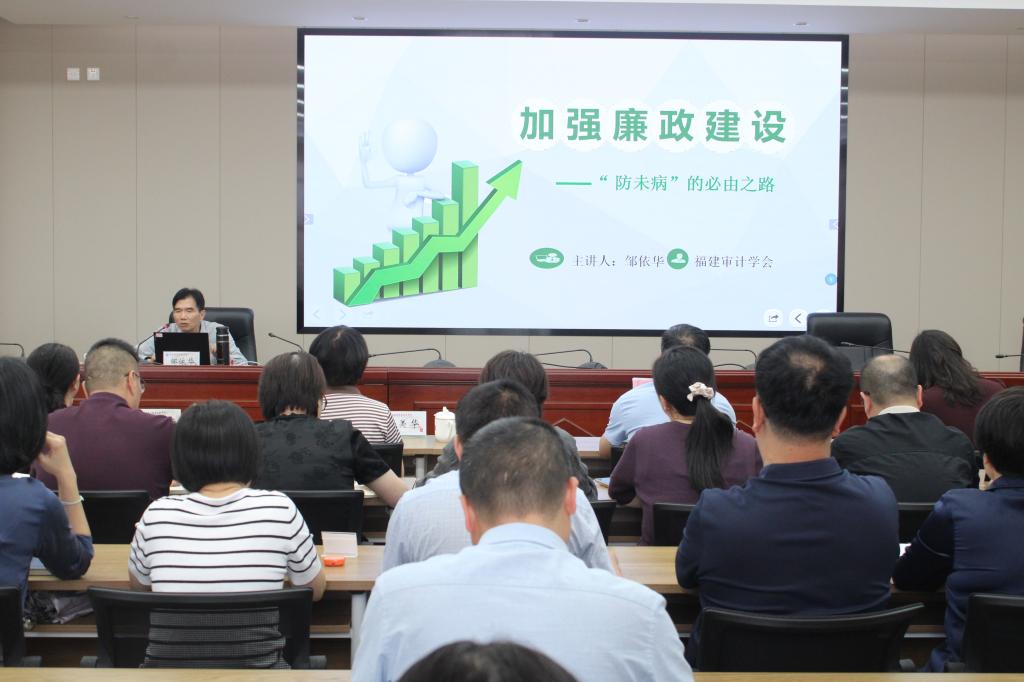 為扎實開展深入貫徹中央八項規(guī)定精神學(xué)習(xí)教育,深化黨員干部的廉潔自律意識,增強拒腐防變的政治定力,5月14日,學(xué)校在厚德樓六樓會議室舉辦廉政警示教育專題講座,邀請福建省審計學(xué)會會長、高級審計師鄒依華作專題報告,校長徐偉主持并講話。