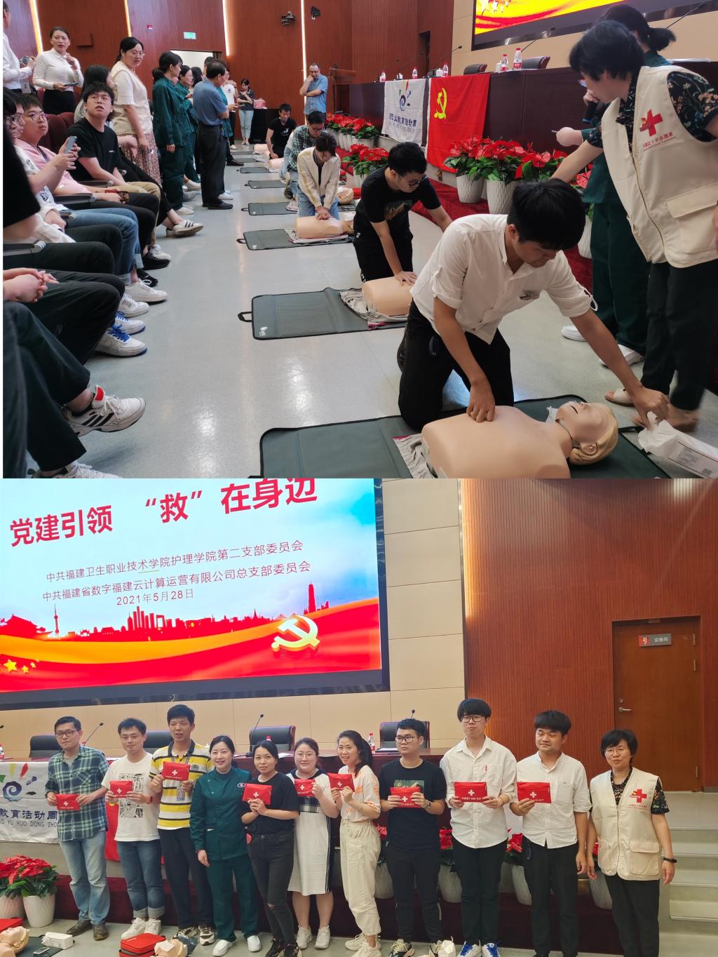 為慶祝中國共產(chǎn)黨成立100周年,貫徹落實(shí)習(xí)近平總書記關(guān)于衛(wèi)生和健康工作重要講話精神,扎實(shí)開展“我為群眾辦實(shí)事”實(shí)踐活動(dòng)和“再學(xué)習(xí)、再調(diào)研、再落實(shí)”活動(dòng),提高支部黨員服務(wù)群眾的宗旨意識(shí),普及應(yīng)急救護(hù)常識(shí),大力弘揚(yáng)“人道、博愛、奉獻(xiàn)”的等精神,5月28日,護(hù)理學(xué)院第二黨支部全體黨員教師走進(jìn)黨建共建單位數(shù)字福建(長樂)云計(jì)算中心,開展以“黨建引領(lǐng),‘救’在身邊”主題黨日活動(dòng),學(xué)校黨委副書記李美華、護(hù)理學(xué)院黨總支書記謝濤出席本次活動(dòng),數(shù)字福建(長樂)云計(jì)算中心60余名工作人員參加本次急救知識(shí)技能培訓(xùn)。
